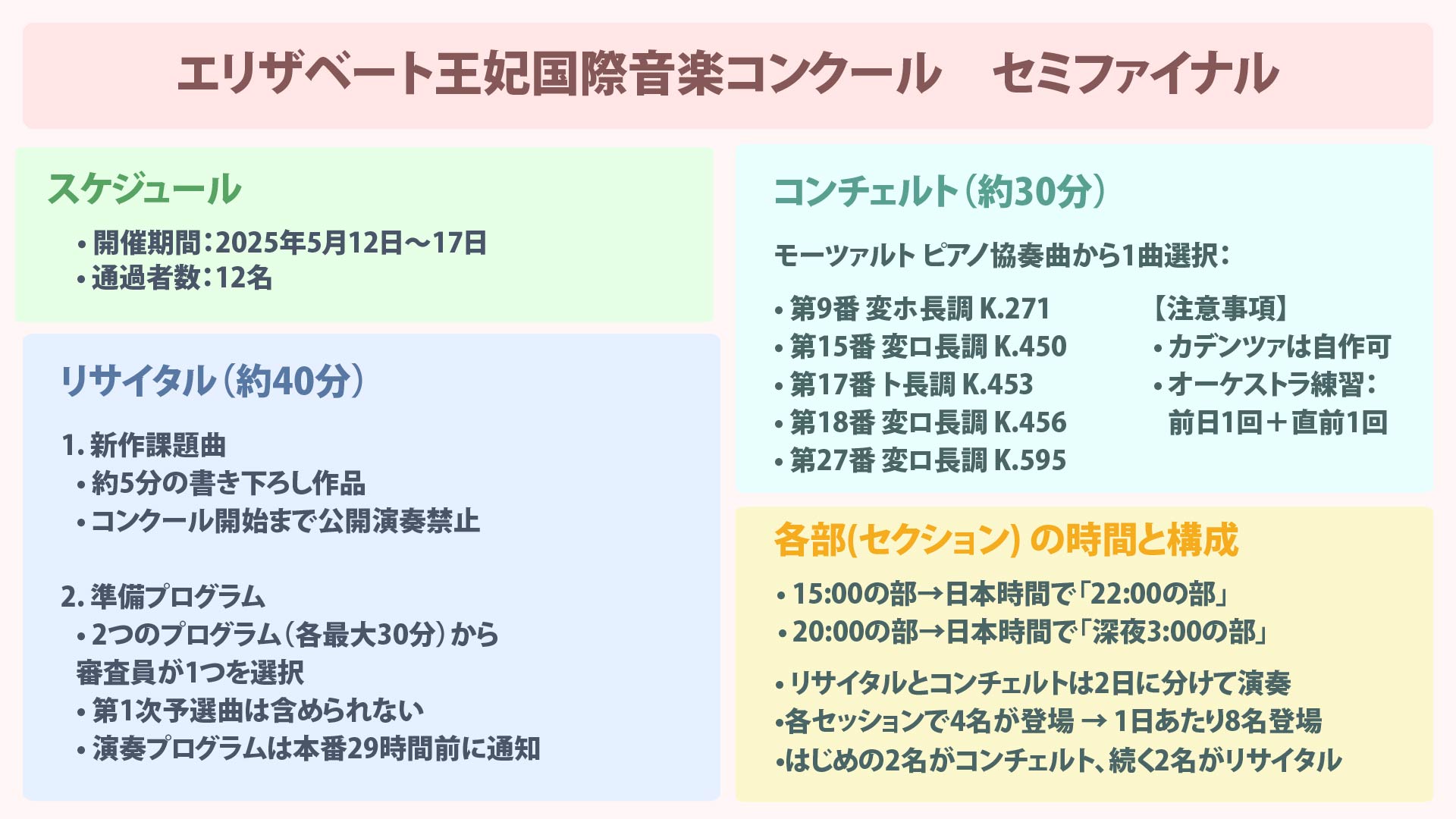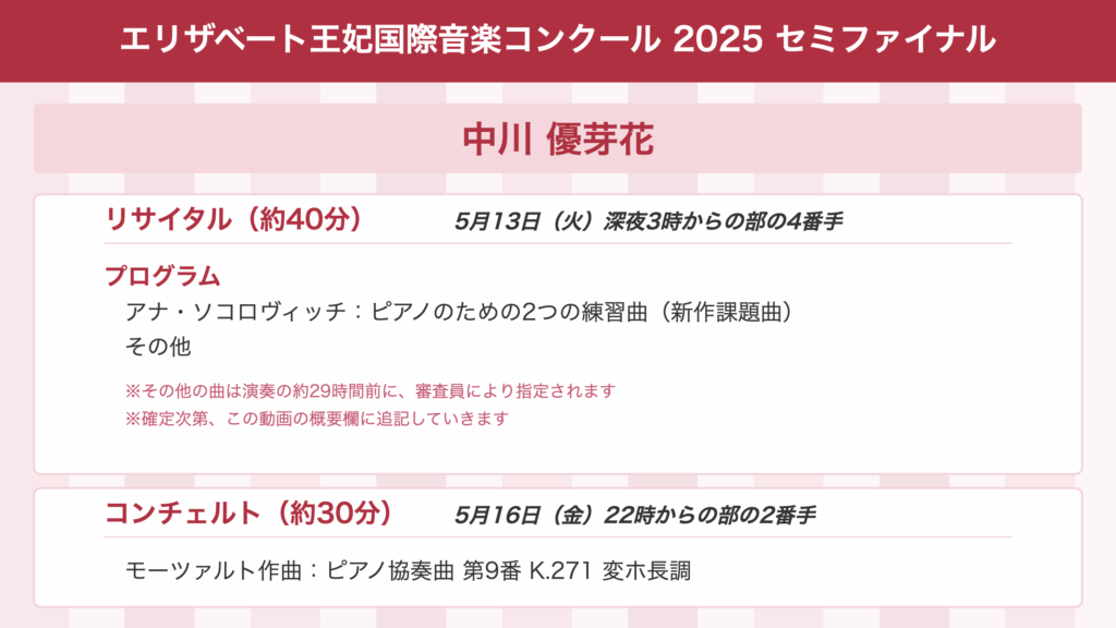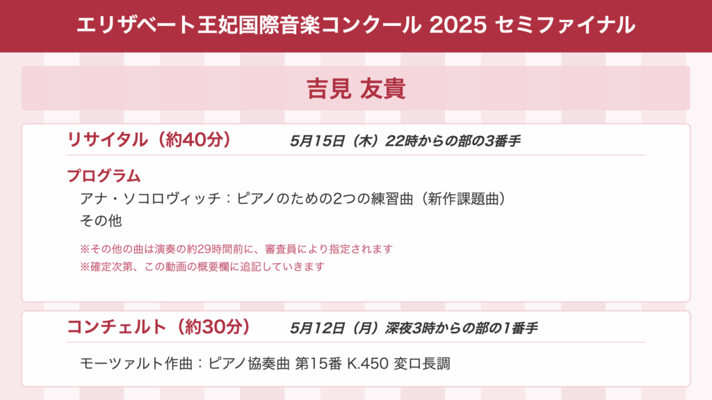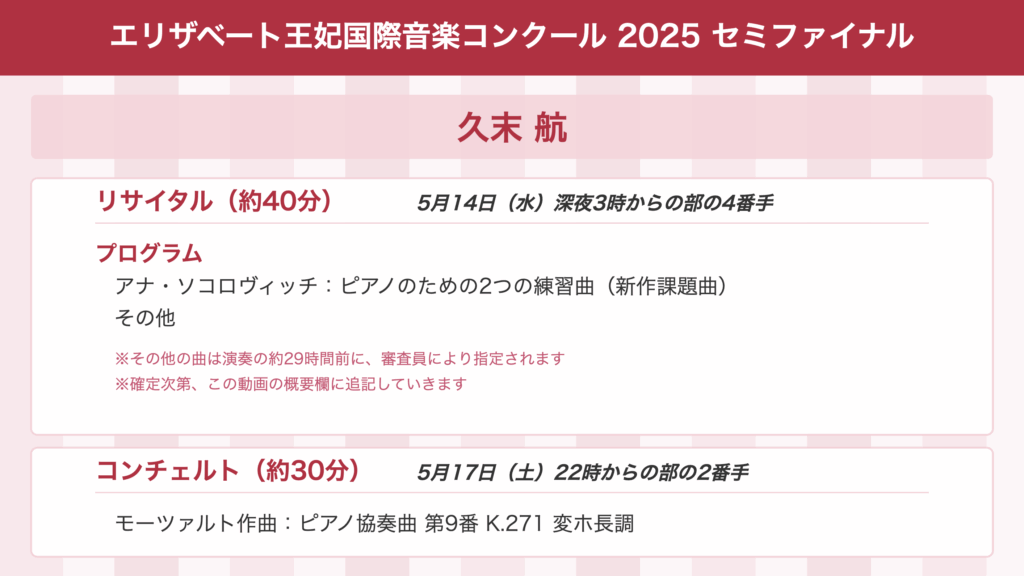 【保存版】セミファイナルでの日本人ピアニストの演奏時間&演奏曲まとめ〜エリザベート王妃国際音楽コンクール2025